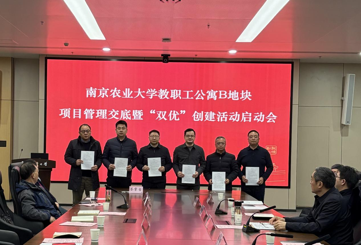 刘营军代表学校对教职工公寓B地块项目进入实质性推进阶段表示祝贺,并向在项目前期筹备中付出辛勤努力的校内外相关人员致以感谢。他强调,教职工公寓建设是学校重点推进的重大民生工程,事关教职工切身福祉、师资队伍稳定和学校长远发展,更关系到学校“农业特色世界一流大学”建设。他要求全体参建单位和人员必须严格遵守法律法规与工程建设规范,将“工程优质、干部优秀”的“双优”目标贯穿项目建设始终,并就项目建设提出四点要求:一要坚决筑牢质量生命线,严格执行标准规范,加强全过程管控,严把材料、工艺和验收关,全力打造精品工程;二要坚决守牢安全与廉政底线,紧绷安全生产之弦,落实安全管理制度,同时深化廉洁共建,强化监督检查,确保项目阳光规范推进;三要科学统筹进度、成本与功能效益,优化施工组织,在保障安全与质量的前提下按期推进,加强成本控制、提升资金使用效益,注重提升居住舒适性与便利性;四要协同联动凝聚共建合力,教师公寓建设办公室加强统筹协调,监督部门强化履职保障,各参建单位认真履行职责,同时欢迎教职工积极参与监督、建言献策,共同把教职工公寓建设成为让学校放心、教师满意的优质工程、阳光工程、暖心工程。